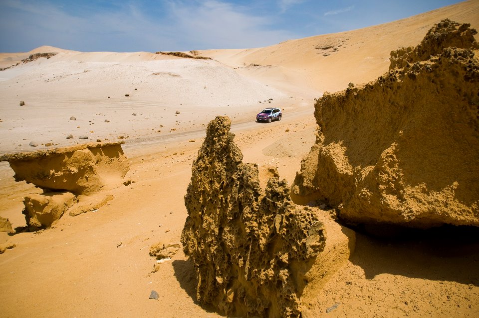 A nossa segunda etapa de viagem pelo Peru foi impressionante. Começámos junto ao mar e terminámos a jornada no coração dos Andes, a 3220 metros de altitude, depois de termos passado por um planalto onde atingimos os 4179 m. e de termos variado dos 33 graus centígrados registados à hora do almoço em Ica, aos 8 graus que o termómetro marcou no ponto mais alto, eram então 18h15 locais. O nosso dia começou percorrendo mais de uma centena de quilómetros por trilhos de areia, ora junto ao Pacífico, ora serpenteando por entre dunas enormes, para depois retomarmos o asfalto da Panamericana Sur e prosseguirmos até Nazca, onde nos desviámos para o interior, iniciando a longa marcha através dos Andes, que está para durar mais uns dias. Neste, o cansaço venceu-nos quando estavamos em Puquio, pequena cidade onde percebemos que não é normal pararem estrangeiros, muito mais ficaram lá a pernoitar. A curiosidade com que nos olhavam divertiu-nos imenso. E o magnifico Hostal Los Andes, dotado de banhos individuais com água “caliente”, devia constar nos guias. Nem que fosse para situações de emergência, como a nossa. Ao chegarmos lá, o Kia Sorento 4WD já marcava 930 quilómetros. Mas ainda tem muito caminho pela frente até regressarmos a Lima…