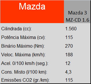 Para Portugal o novo Mazda 3 vai contar com três motores a gasolina e com o conhecido bloco diesel MZ-CD 1.6 de 115 cavalos que deverá ser o mais cobiçado no mercado nacional. Os preços vão arrancar nos € 24.000.