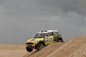 A corrida reservada aos automóveis teve em Nani Roma o vencedor, com o Mini do espanhol (na foto) a bater o Hummer de Robby Gordon por mais de quatro minutos. Giniel De Villiers foi o terceiro melhor, à frente do Mini de Stéphane Peterhansel que, todavia, segue no comando bastante destacado: a vantagem sobre a Toyota Hilux de De Villiers é agora de 50m.21s., o que a três dias do final abre desde já perspectivas de mais uma vitória para Peterhansel…