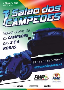 A Federação Portuguesa de Automobilismo e Karting (FPAK) em conjunto com a Federação de Motociclismo de Portugal (FMP) vão realizar nos próximos dias 13, 14 e 15 de Dezembro o 1º Salão dos Campeões na Exposalão Batalha. O evento visa juntar todos os Campeões Nacionais das duas e quatro rodas numa exposição única e pioneira em Portugal em que carros, motos e pilotos deixam por alguns dias as pistas de competição e se aproximam do público em geral.