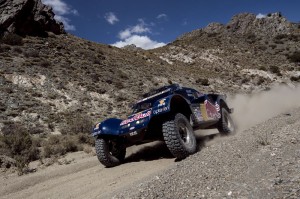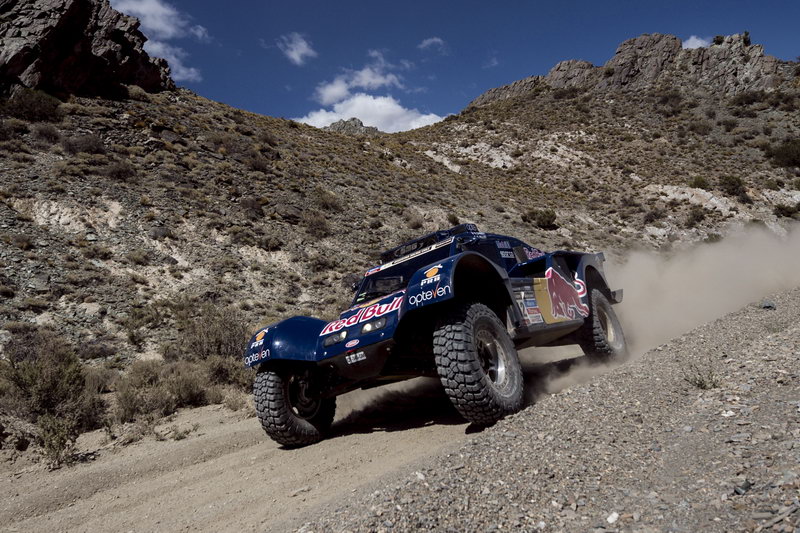 Foi simplesmente fantástica a corrida de Carlos Sainz na etapa de hoje entre San Juan e Chilecito. O experiente piloto espanhol colocou o seu buggy SMG à frente de cinco Mini, com Peterhansel a obter o 2º lugar a seis minutos do novo líder do Dakar sul americano. E se os Mini não chegaram para os dotes de Carlos Sainz, cabe-lhes pelo menos a honra de colocarem cinco carros nos seis primeiros lugares. Nasser Al-Attiyah foi 3º a 8.58, Federico Villagra 4º a 13.19, Nani Roma o 5º a 14.08 e Orlando Terranova, acompanhado por Paulo Fiuza, terminou a etapa no 6º lugar a 16.04 de Sainz. O sul africano De Villiers levou a Toyota Hilux ao 7º posto, mas já a 24.49 do piloto espanhol.