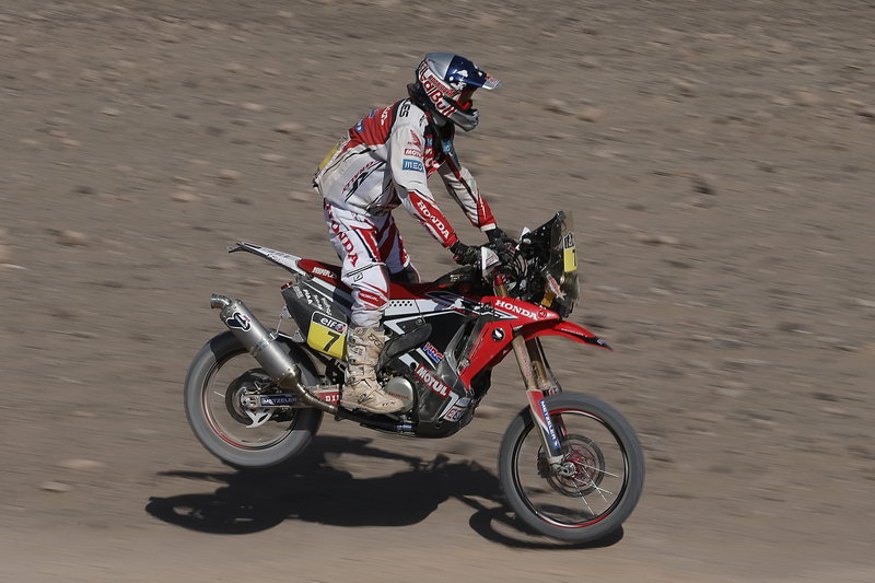 Hoje foi o dia da Honda. Joan Barreda vence a etapa, ganhando 11m26 a Marc Coma. Numa moto idêntica, Hélder Rodrigues foi 2º classificado a 8m00 de Barreda, subindo ao 5º lugar da classificação geral, ainda com esperanças fundamentadas de poder vir a alcançar o 3º lugar do pódio, no final de um Dakar que não foi nada favorável aos pilotos portugueses. Coma vê agora a sua vantagem para Barreda diminuir para 44m10, enquanto Viladoms (3º), Pain (4º), Hélder Rodrigues (5º) e Després (6º), estão todos na luta pelo último lugar do pódio, a mais de duas horas do líder, mas separados entre eles por pouco mais de 20 minutos. Pode ser que o final deste Dakar ainda seja emocionante nas duas rodas.