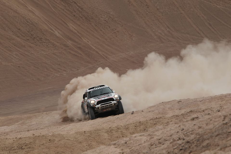 Nasser Al-Attiyah voltou a dar espectáculo, batendo Stephane Peterhansel por 3m50 na etapa que ligou Iquique a Antofagasta. Puro divertimento para o sempre fantástico piloto do Qatar, que ainda guarda esperanças de vitória, embora algo remotas. Mas a colheita do dia foi sem dúvida para Peterhansel, que apesar do 2º lugar na etapa, ganha mais 10 minutos na luta directa com Nani Roma, que hoje foi 3º classificado a 13m45 do vencedor. Contas feitas, roma continua no comando, mas agora só com 2m15 de vantagem para Peterhansel, que de forma fria e calculista, se prepara para vencer mais um Dakar. Mas esta etapa que vincou algumas diferenças, foi uma vez mais, dominada pelos Mini All4 Racing que colocaram sete carros entre os oito primeiros classificados. O resistente, uma vez mais, foi o sul africano De Villiers que, com a Toyota Hilux, conquistou o 4º lugar da etapa a 28m15 de Al-Attiyah. Com este resultado, e com o 7º lugar de Orlando Terranova, há uma troca de podições na classificação geral. Nasser Al-Attiyah passa para 3º a 46m01 de Nani Roma, De Villiers também sobe para o 4º lugar a 1h14m16 e Terranova com Paulo Fíuza descem para o 5º posto, mas apenas a 20 segundos de diferença do sul africano. Com três etapas para o final da prova, roma continua a comandar, mas agora com o “fantasma” de Peterhansel cada vez mais perto. Numa prova deste tipo, Al-Attiyah ainda poderá responder, mas De Villiers e Terranova também podem querer lutar pelo pódio. O “Senhor Dakar” como é conhecido Stephane Peterhansel, já nos habituou a provas deste tipo, caminhando de forma calculista, para uma vitória anunciada, que se espera não seja consentida pelo seu amigo nani Roma.