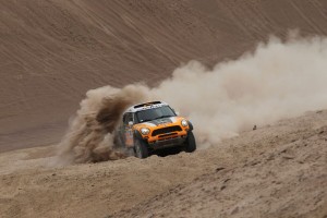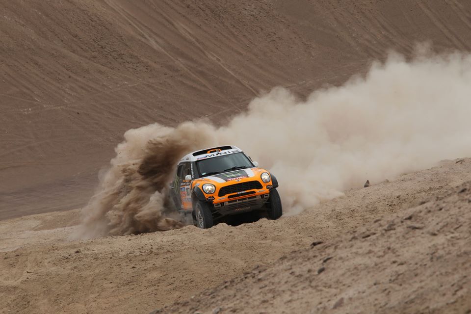 Nesta fase da prova, quando faltam apenas duas etapas para o final, nem vale mais a pena falar no domínio da Mini, que consegue colocar seis carros nos sete primeiros lugares da classificação geral. Apenas a Toyoya de De Villiers desfaz o ramalhete ao registar o 5º lugar da geral. Na frente nada de novo. Nani Roma comanda e Peterhansel está em 2º a apenas 5m32. Acordos de cavalheiros para saber quem será o grande vitorioso? Provavelmente não… Amizade e companheirismo à parte, o francês gosta de coleccionar vitórias no Dakar, tanto de carro como de moto, e não sabemos se estará pelos ajustes de deixar o seu amigo Nani Roma vencer… Depois na luta pelo 3º lugar do pódio, está tudo em aberto. Os candidatos são três: Nasser Al-Attiyah o 3º a 56m01; Orlando Terranova o 4º a 1h03m39 e De Villiers o 5º a 1h15m57. Depois, Holowczyc é 6º classificado, mas já a uma “eternidade” de 3h44m57.