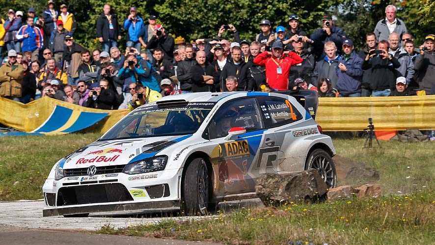 Com um Polo, um Citroën DS3 e um Hyundai i20 nos três primeiros, só falta a Ford ser mais competitiva na Alemanha. Contudo, a M-Sport não vai além do sexto posto de Hirvonen, atrás de Sordo (quarto) e Mikkelsen (quinto). Estes dois perderam posições com a subida de Neuville para o último lugar do pódio.